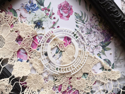Композицию я составила из различных гипсовых украшений, металлических декоративных элементов и вырубки ножами Scrapman.